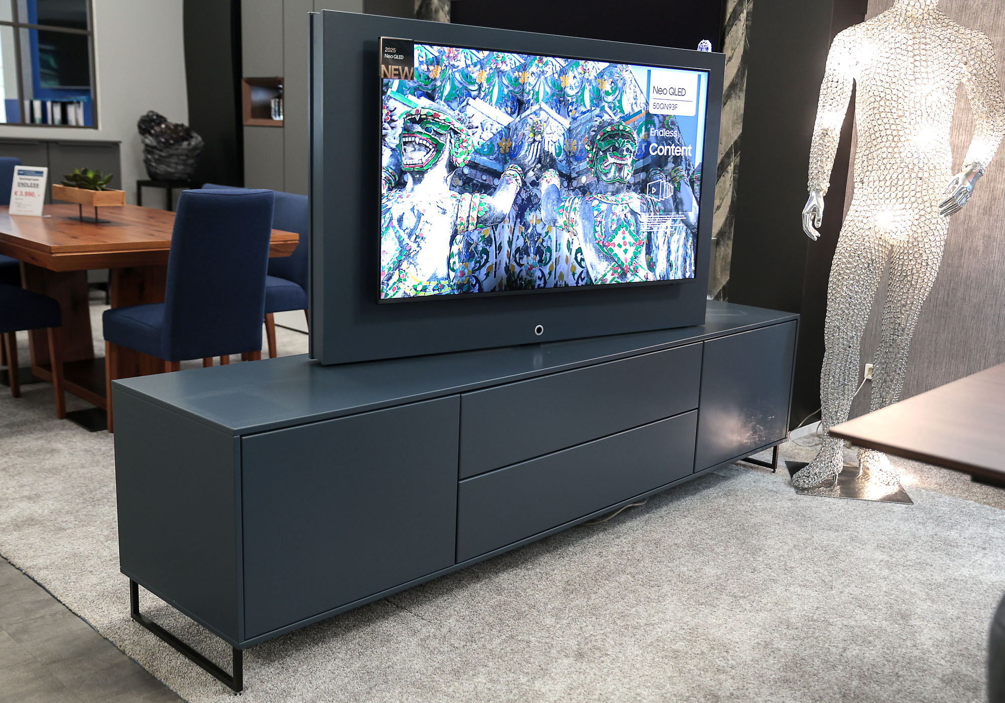TV-Element LOTUS – drehbares TV-Paneel & Sideboard auf Kufen in Atlantikblau